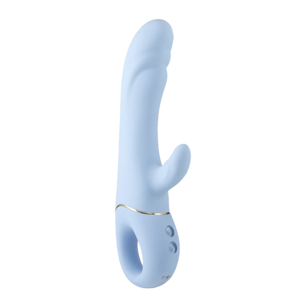Like a rumble deep below the surface, this dual-action vibrator is sure to rock every boat. Featuring a looped grip and two independently controlled motors, the shaft’s rippled curve comes in like the tide while the wave-textured clitoral stimulator provides a rush of pleasure that will leave you wanting more.